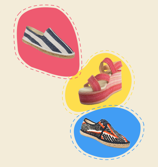 To create the signature braided rope sole of our espadrilles, skilled artisans meticulously weave jute yarns into sturdy braids, ensuring durability and flexibility for comfortable wear.