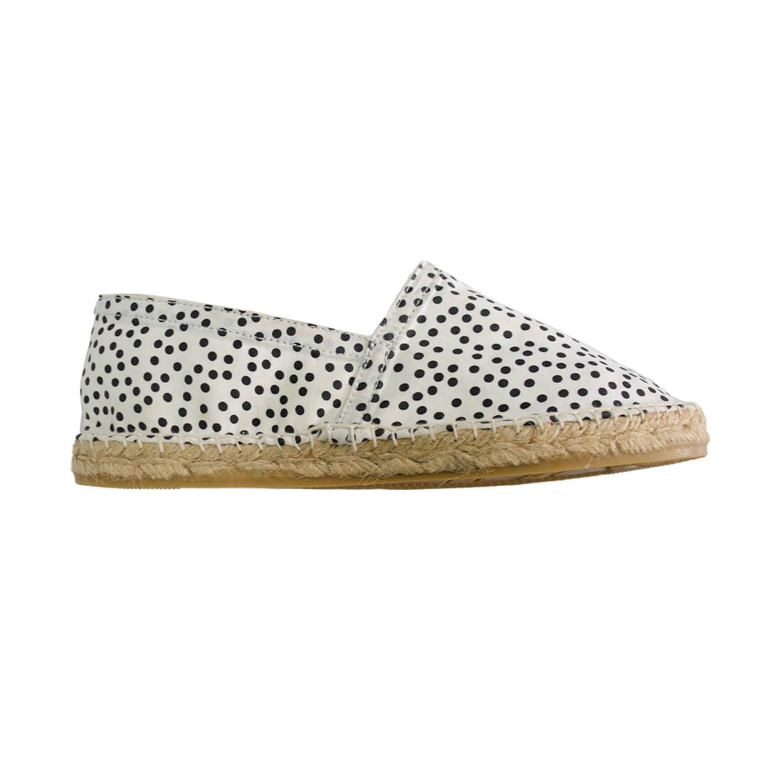 Upper: Cotton Canvas with polka dot print Lining: Cotton Poplin Insole: No Sole: 14/15 mm (B/W) Out Sole : Rubber Vulcanized